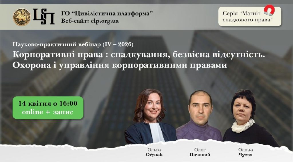 ВЕБІНАР: “Корпоративні права: спадкування, безвісна відсутність. Охорона і управління корпоративними правами”