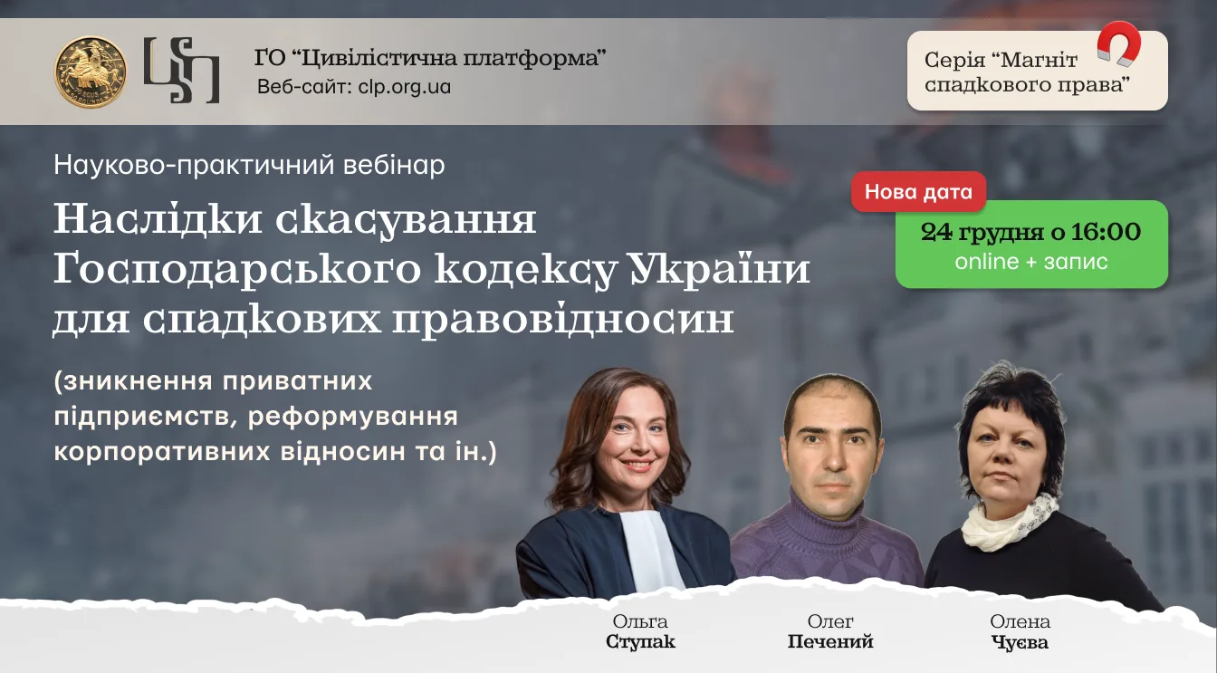 ВЕБІНАР: “Корпоративні права: спадкування, безвісна відсутність. Охорона і управління корпоративними правами”